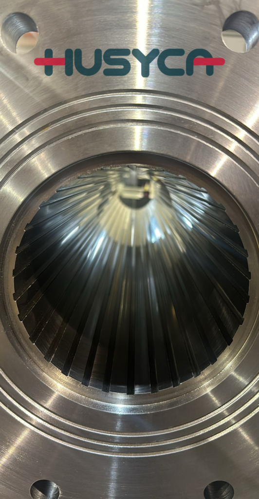 Caméra spéciale pour extrudeuse agroalimentaire avec régates intérieures en matériaux spécifiques à ce secteur. Les ensambles utilisés dans l’industrie alimentaire doivent répondre à certaines normes
